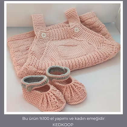 Pamuklu koton ip ile elde örülmüş, 1 yaş için uygun salopet ve patik seti